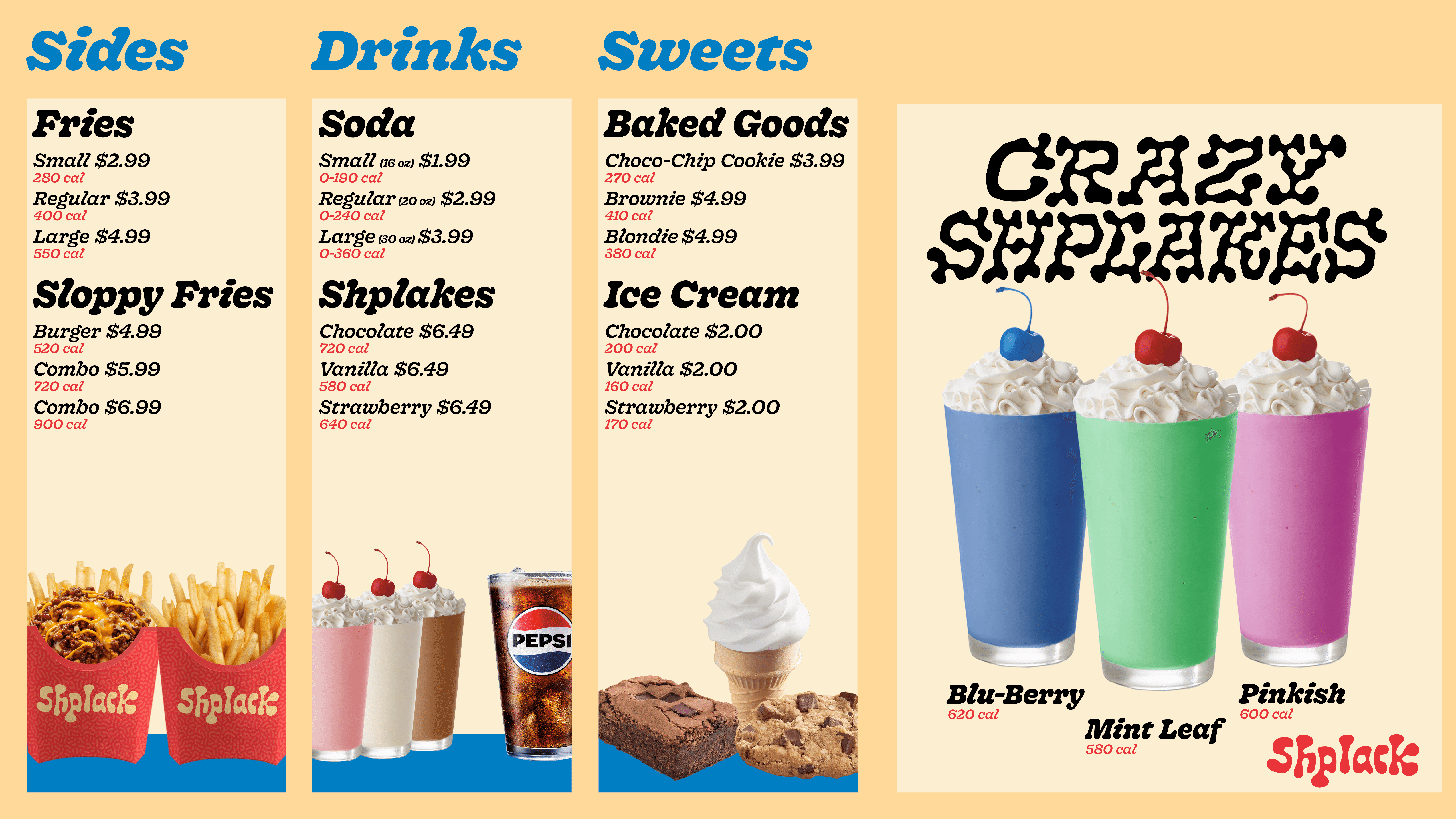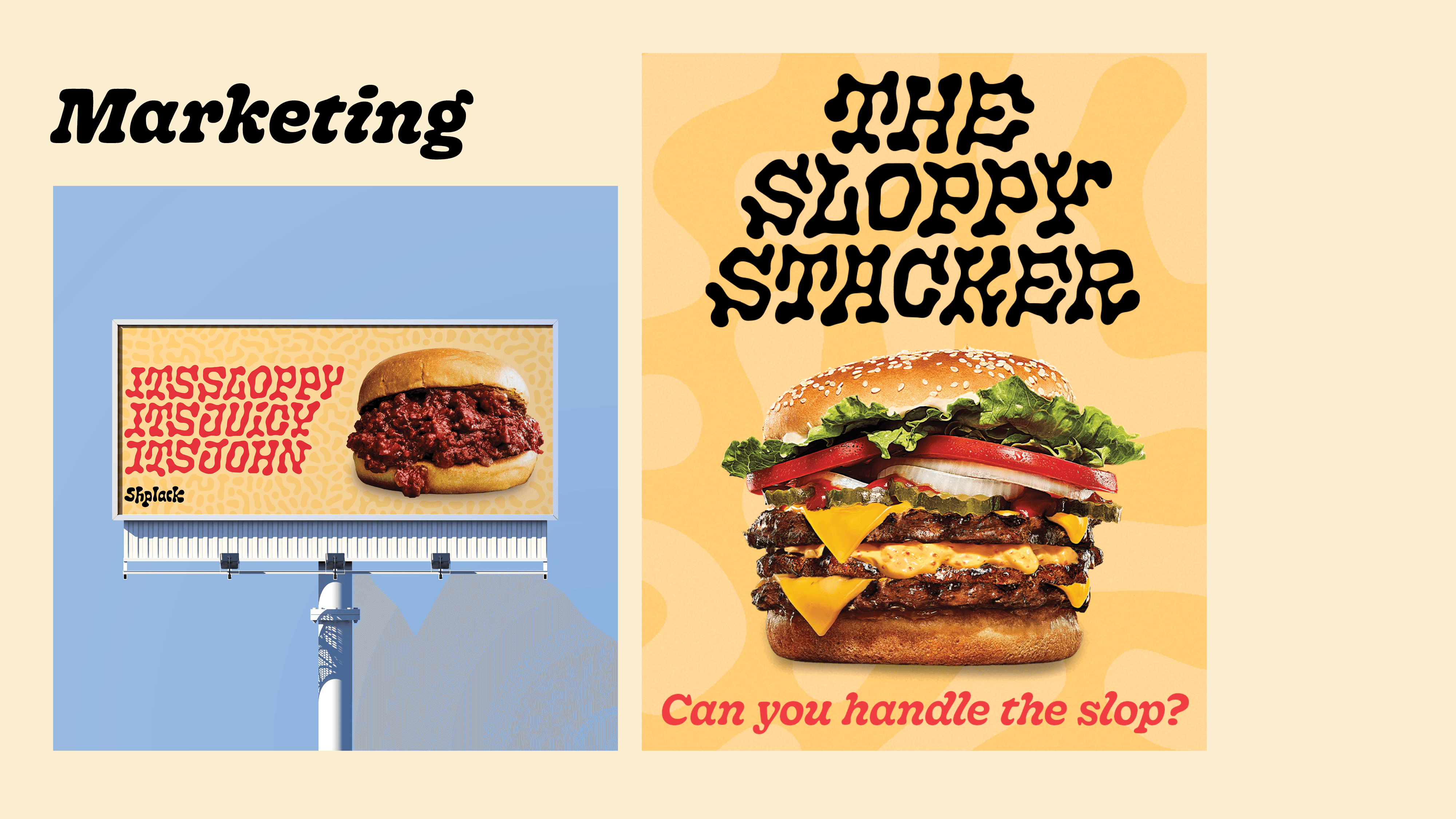 Shplak is a restaurant branding project built around an absurdist tone, using playful typography and unconventional visual elements to create a distinct and memorable identity. The system leans into unexpected forms and humor while maintaining a structured approach, balancing clarity with a more offbeat, expressive voice.
